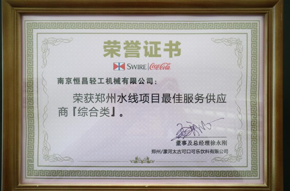 南京恒昌包裝作為后段整包商,在鄭州太古可口可樂(lè)48000bph水線項(xiàng)目中獲得“最佳服務(wù)供應(yīng)商”殊榮!